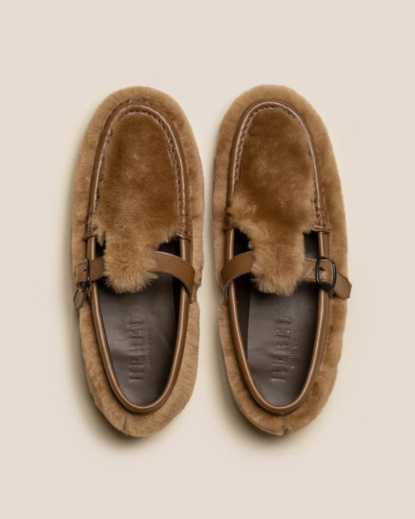 T-bar loafer crafted in light shearling with smooth leather trims. Hand-sewn using the traditional moccasin construction. Made in Spain by uniquely talented artisans, celebrating excellence in craftsmanship.