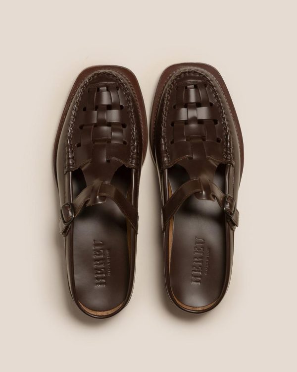 Woven t-bar mule loafer crafted in Spanish structured calf leather. Made in Spain by uniquely talented artisans, celebrating excellence in craftsmanship.