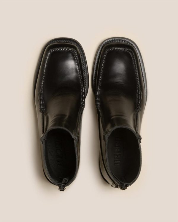 Square toe low calf zipped boot crafted in Spanish calf leather and calf leather lining. Hand-sewn using the traditional moccasin construction. The outsole is stitched to the upper for extra flexibility and durability. Made in Spain by uniquely talented artisans, celebrating excellence in craftsmanship.