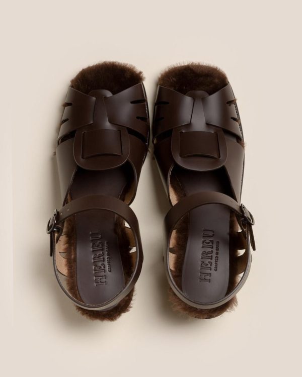 Women ANCORA SQUARED HEELED SHEARLING Open-Toe Fisherman Sandal | Hereu Heels