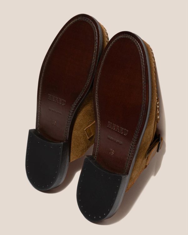 Buckle-strap mule loafer crafted in unlined full-grain double face Italian suede. Hand-sewn using the traditional moccasin construction. The outsole is stitched to the upper for extra flexibility and durability. Handmade in Spain by uniquely talented artisans, celebrating excellence in craftsmanship.