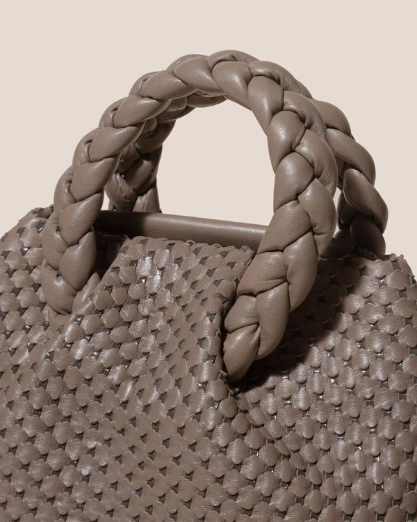 Medium leather tote with braided leather handles, crafted in interlaced calf leather lined with organic cotton canvas. Made in Spain by uniquely talented artisans, celebrating excellence in craftsmanship.