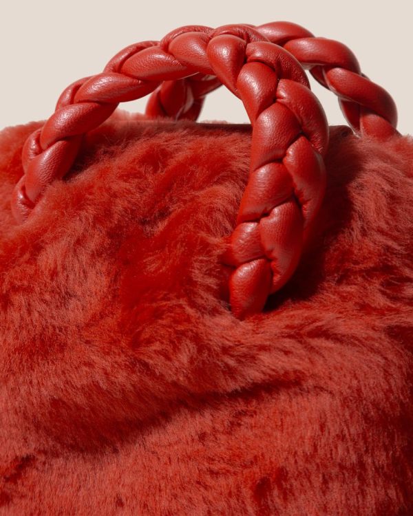 Small crossbody bag with braided leather handles, crafted in shearling sheepskin and supple lambskin. Made in Spain by uniquely talented artisans, celebrating excellence in craftsmanship.