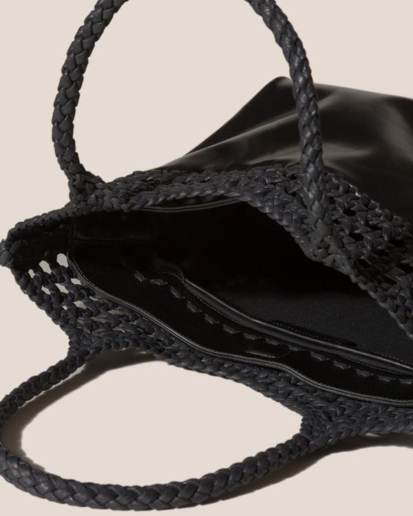 Braided top shoulder bag crafted in polished calf leather and waxed cotton. Organic cotton lining. Made in Spain by uniquely talented artisans, celebrating excellence in craftsmanship.