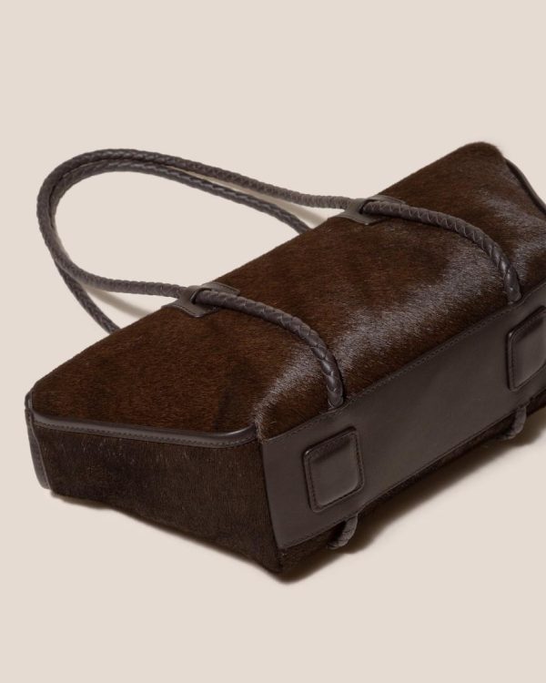 Leather framed shoulder bag crafted in calf hair. Made in Spain by uniquely talented artisans, celebrating excellence in craftsmanship.