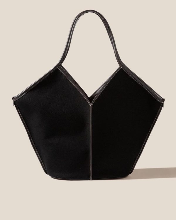 Organic cotton tote bag edged with smooth leather. It has a zipped pouch to secure small essentials and slim top handles that sit over the shoulder. Handmade in Spain by uniquely talented artisans, celebrating excellence in craftsmanship.