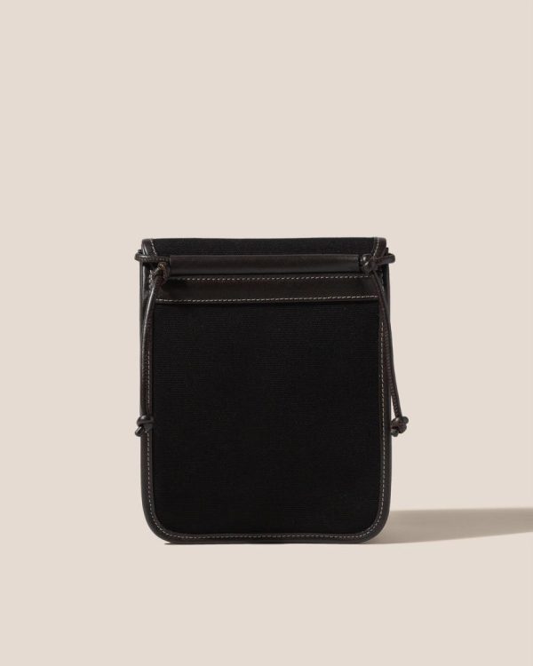Flat square crossbody, crafted in organic cotton canvas and trimmed with calf leather. Made in Spain by uniquely talented artisans, celebrating excellence in craftsmanship.