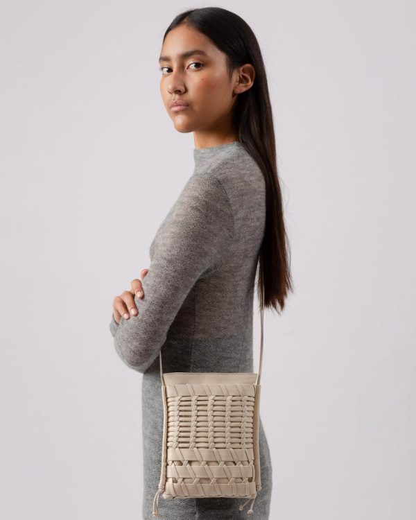 Flat square crossbody bag crafted in braided supple shiny lambskin. Made in Spain by uniquely talented artisans, celebrating excellence in craftsmanship.