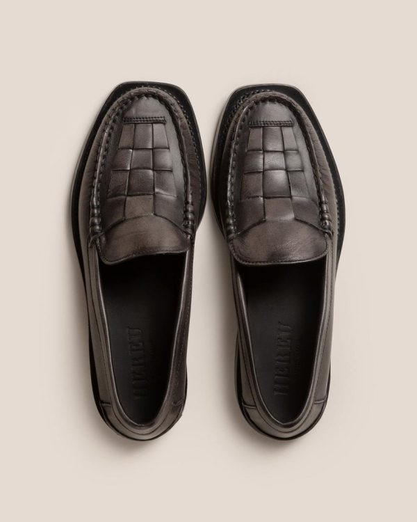 Slip-on loafer with interwoven front detail, crafted in duotone brushed calf leather.Handmade in Spain by uniquely talented artisans, with local materials, celebrating excellence in craftsmanship.