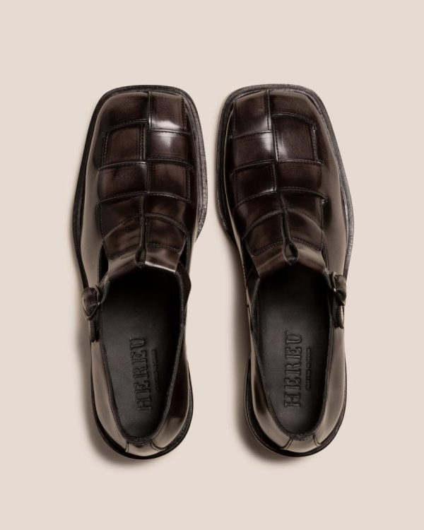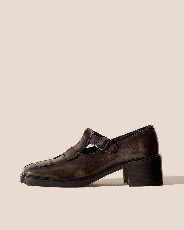 Interwoven T-bar heeled shoe crafted in Spanish brushed leather. Made in Spain by uniquely talented artisans, celebrating excellence in craftsmanship.