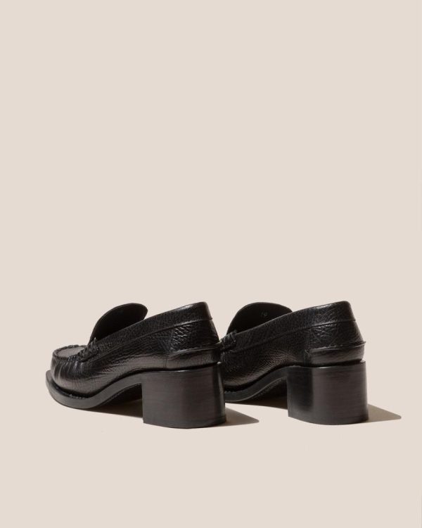 Heeled slip-on loafer with interlaced detail crafted in Spanish tumbled calf leather. Hand-sewn using the traditional moccasin construction. The outsole is stitched to the upper for extra durability and flexibility. Made in Spain by uniquely talented artisans, celebrating excellence in craftsmanship.